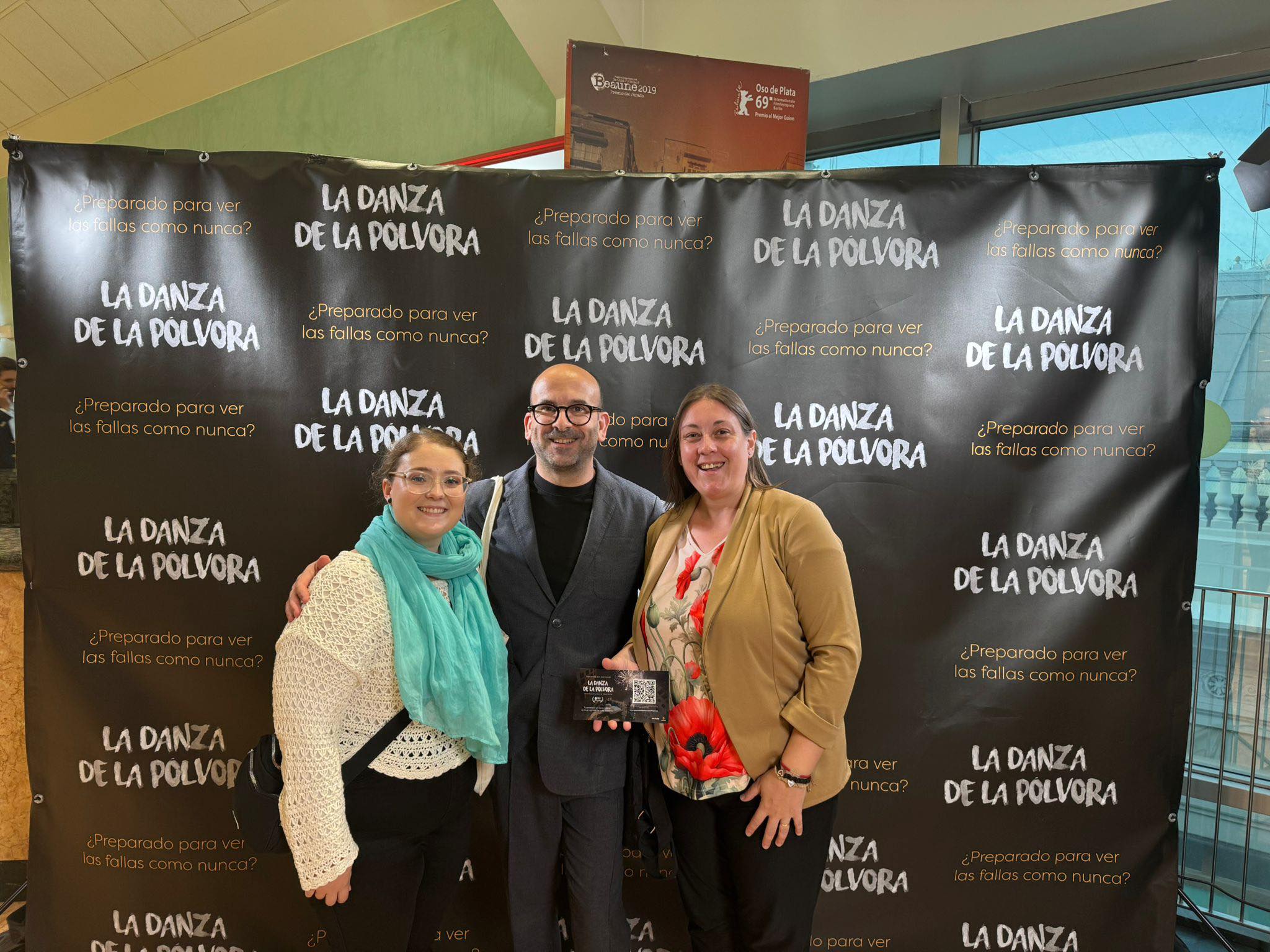 En la vesprada-nit d’ahir dissabte 7 d’octubre, el Mestre Major Vicente Julián García Pastor, la directiva Ángela Grau i l’agremiada Clara Ruiz van assistir a l’estrena de “La danza de la pólvora”, de Pablo Zanón, en els Cines Lys de València.